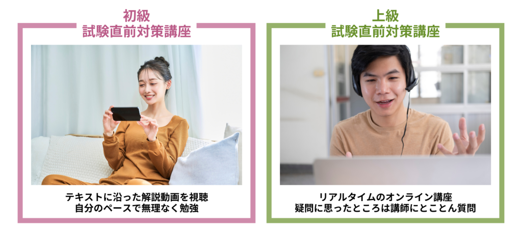 独学に自信がない方、試験までに勉強が間に合うか不安な方には試験直前対策講座をご用意しております。